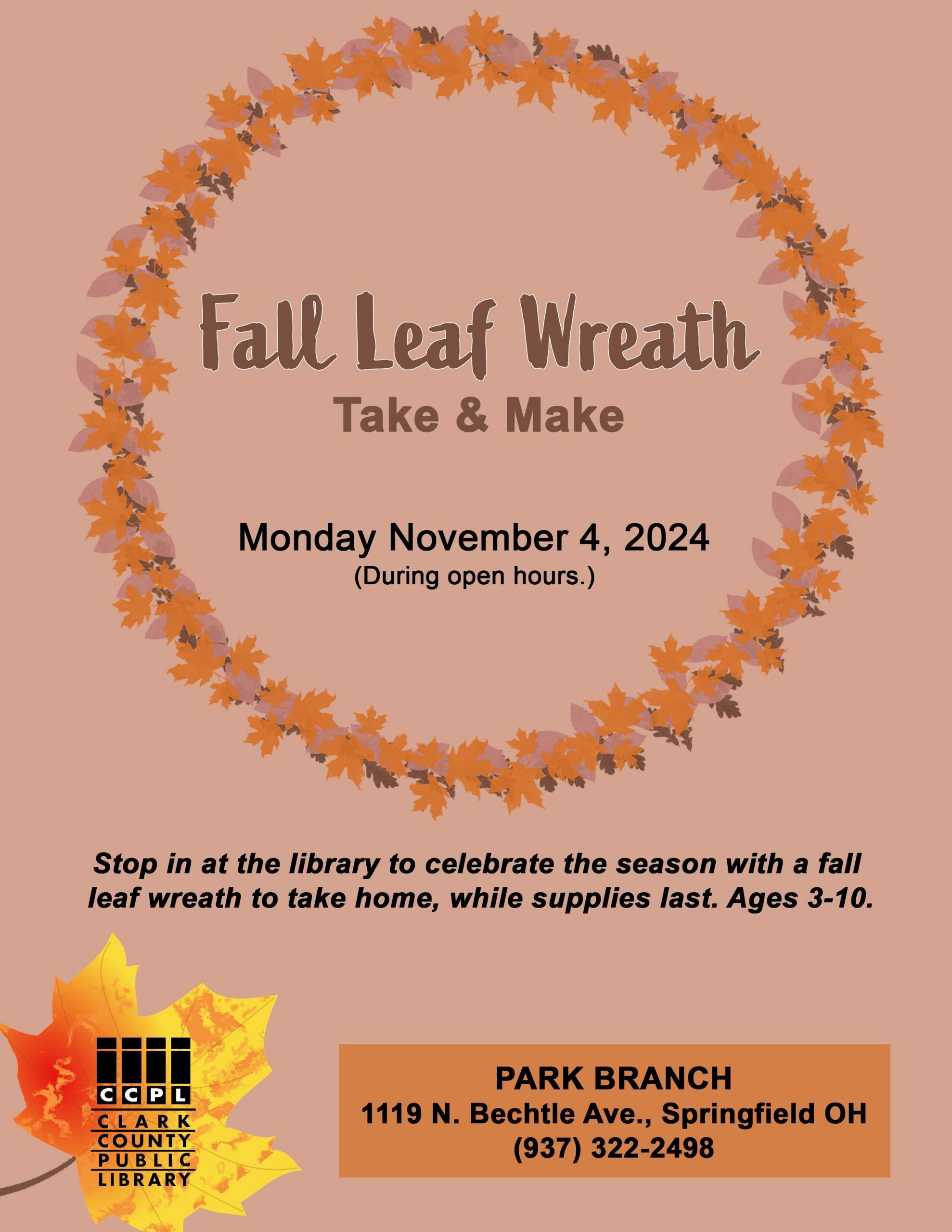 Fall Leaf Wreath - Take & Make at the Clark County Public Library - Park Branch (Springfield, Ohio)